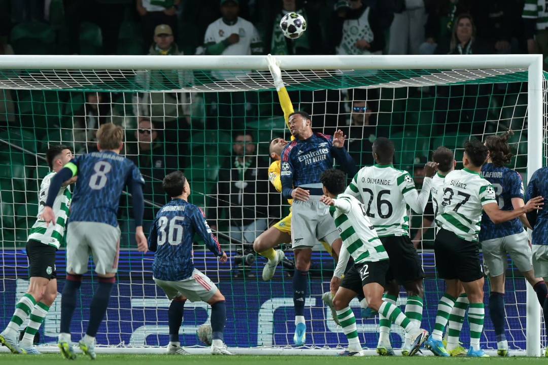 开场仅仅6分钟,主场作战的葡萄牙体育便亮出了利刃。阿劳霍接后场长传形成单刀之势,一脚势大力沉的爆射直奔死角。皮球高速飞行的瞬间,拉亚腾空而起,用指尖将球托向了横梁。这记足以竞争赛季欧冠最佳扑救的瞬间,不仅为枪手在客场稳住了局面,更成为整场比赛的心理分水岭。